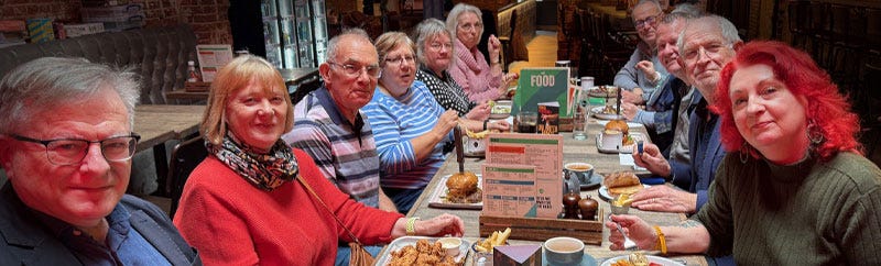 Members of the Crime Writers’ Association’s East Anglian Chapter got together in Norwich for a lunchtime catch-up last month. Pictured around the table, from front left: Sean Enright, Sarah Doig, Iain Andrews, Stephanie George, Maureen Austin, Heather Peck, Martin Sterling, Fiona Leitch, Nick Guthrie, Phil Johnson and Sue Saunders. With several new members, there were introductions and lots of chat, ranging from book promotion to behind-the-scenes stories from Coronation Street, by way of where not to put a 17th century plague mask…