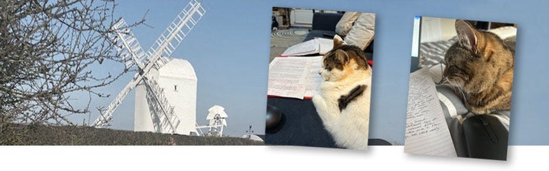 I plan a lot of my writing while out and about on my daily walk. I’m lucky to live in the Suffolk countryside and there’s nothing better to unblock a plot line problem, or character issue, than a good old power walk in the fresh air. I try to get out every day, weather permitting and I find I get a lot of my book ideas while out and about. When I return, I scribble them down in my trusty ‘ideas’ notebook for future use! So, I’m really looking forward to the better weather, as then there’s no excuse not to get those walking boots on and get the creative juices flowing.